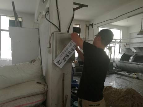 执法人员对水洗车间用电控制柜查封