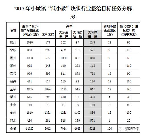 5月8日,浙江正式2017年小城镇“低小散”块状行业整治目标任务。