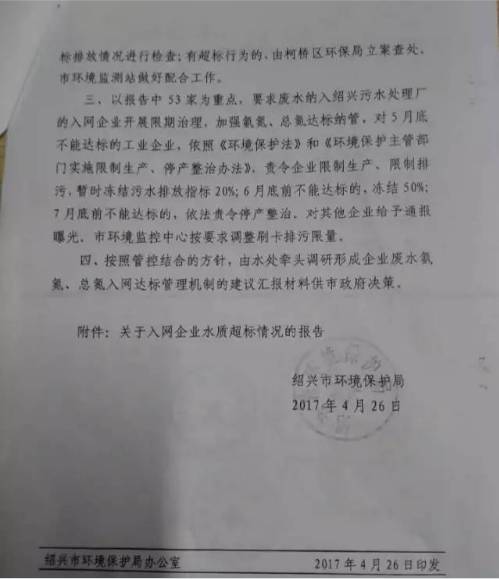 “希望各涉污企业引以为戒,完善治污设备,规范治污行为,确保各项污染物达标排放。”