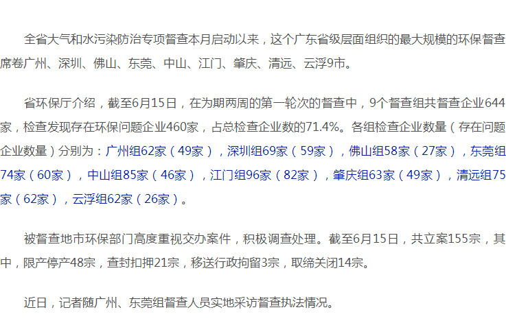 广东 | 首轮检查企业644家,发现环保问题460例,立案155宗!